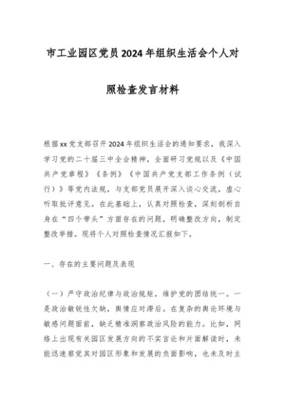 / 市工业园区党员2024年组织生活会个人对照检查发言材料