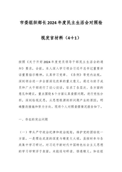 / 市委组织部长2024年度民主生活会对照检视发言材料(4+1)