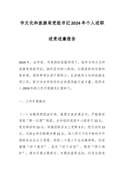 / 市文化和旅游局党组书记2024年个人述职述责述廉报告