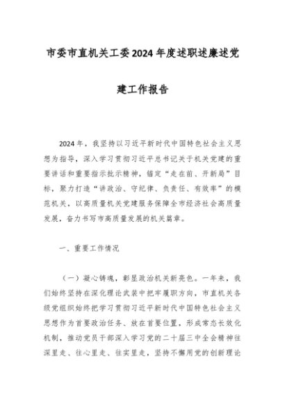 / 市委市直机关工委2024年度述职述廉述党建工作报告