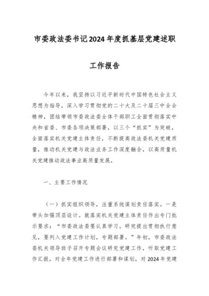 / 市委政法委书记2024年度抓基层党建述职工作报告