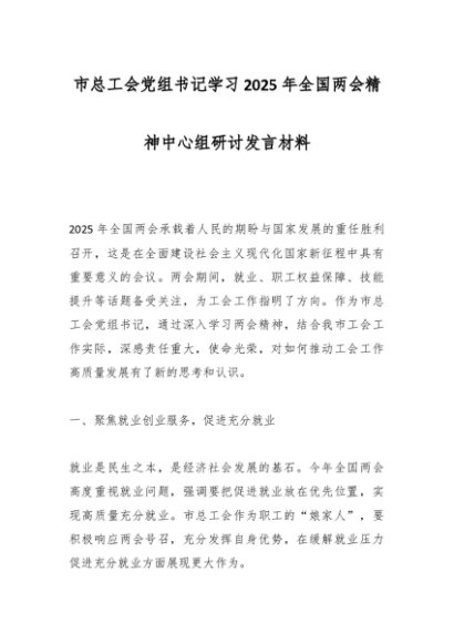 / 市总工会党组书记学习2025年全国两会精神中心组研讨发言材料