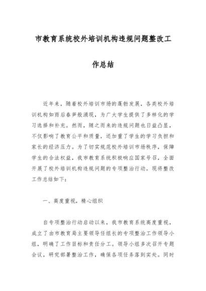 / 市教育系统校外培训机构违规问题整改工作总结