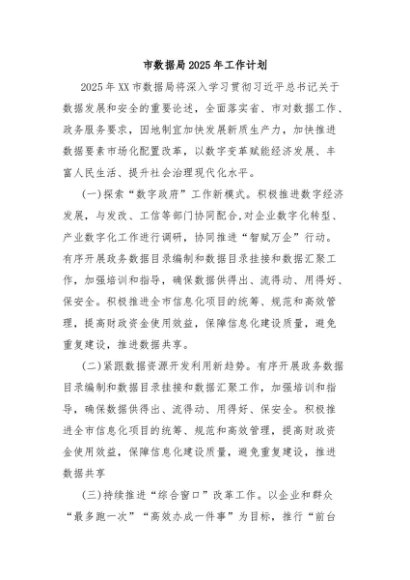 / 市数据局2025年工作计划