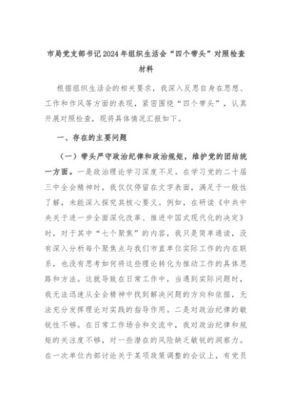 / 市局党支部书记2024年组织生活会“四个带头”对照检查材料