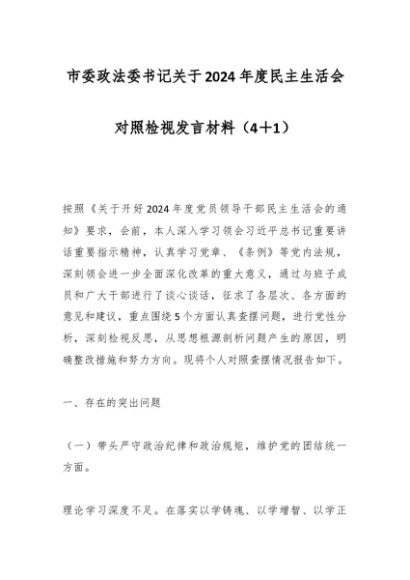 / 市委政法委书记关于2024年度民主生活会对照检视发言材料(4+1)