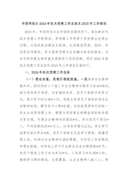 / 市委网信办2024年机关党建工作总结及2025年工作谋划