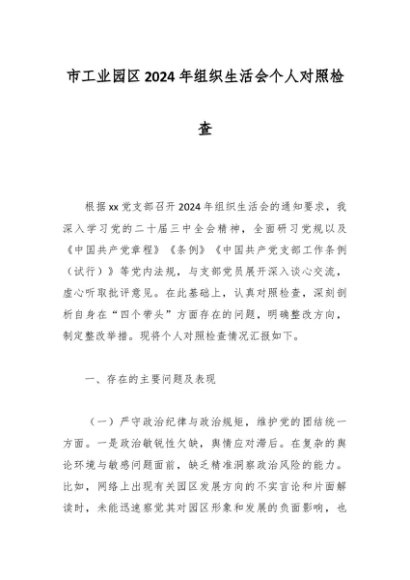 / 市工业园区2024年组织生活会个人对照检查