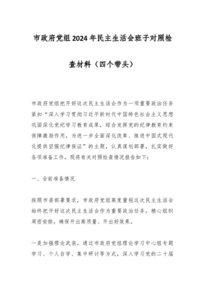 / 市政府党组2024年民主生活会班子对照检查材料(四个带头)
