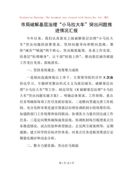 / 市局破解基层治理“小马拉大车”突出问题推进情况汇报
