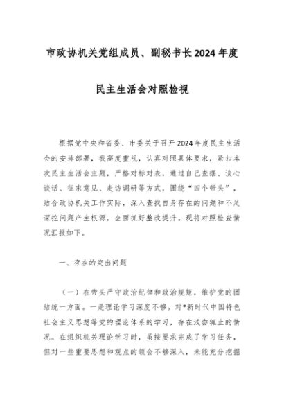 / 市政协机关党组成员、副秘书长2024年度民主生活会对照检视