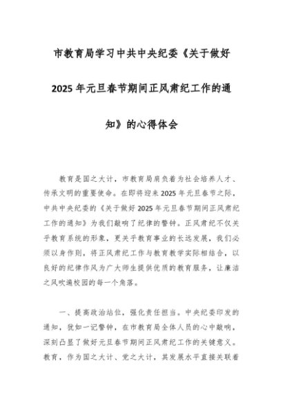 / 市教育局学习中共中央纪委《关于做好2025年元旦春节期间正风肃纪工作的通知》的心得体会