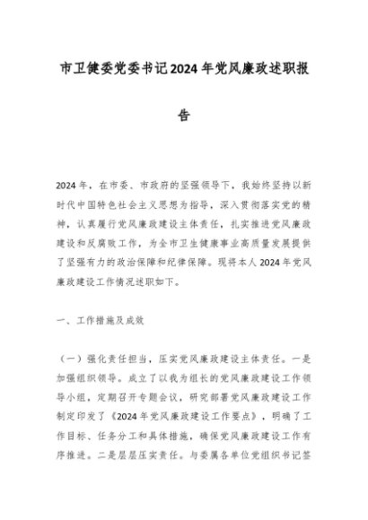 / 市卫健委党委书记2024年党风廉政述职报告