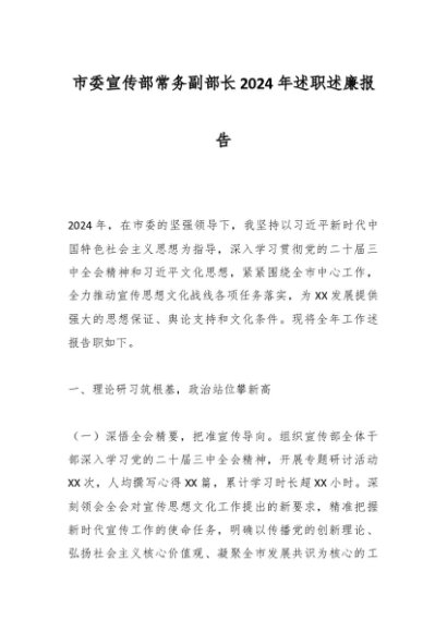 / 市委宣传部常务副部长2024年述职述廉报告