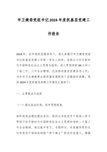 / 市卫健委党组书记2024年度抓基层党建工作报告