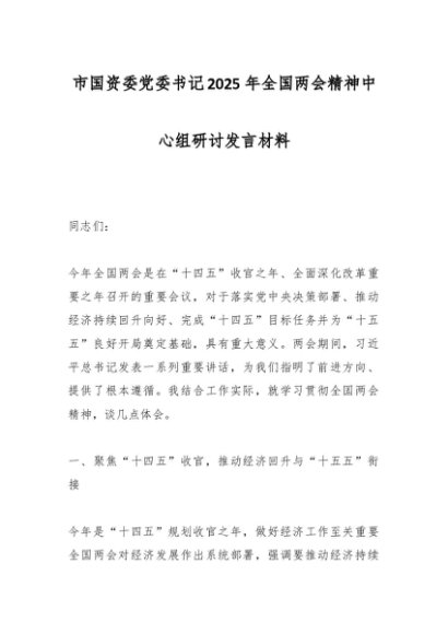 / 市国资委党委书记2025年全国两会精神中心组研讨发言材料
