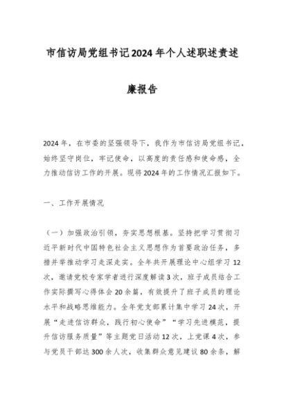 / 市信访局党组书记2024年个人述职述责述廉报告