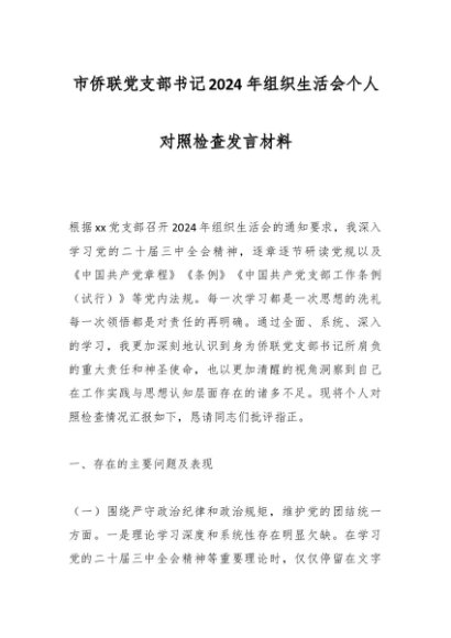 / 市侨联党支部书记2024年组织生活会个人对照检查发言材料
