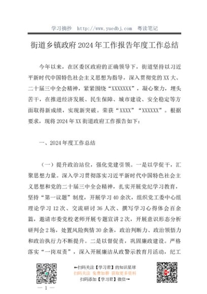 / 工作总结:20241127街道乡镇政府2024年工作报告年度工作总结