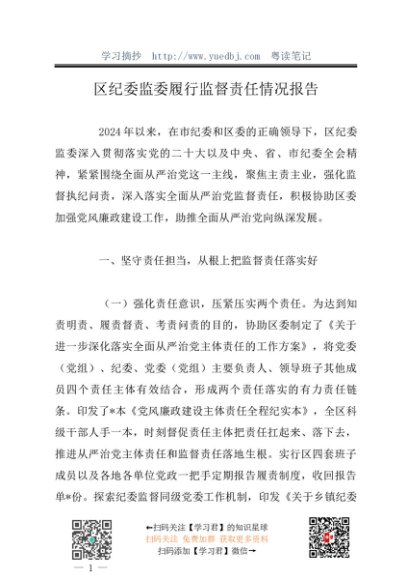 / 工作总结:20241127区纪委监委履行监督责任情况报告