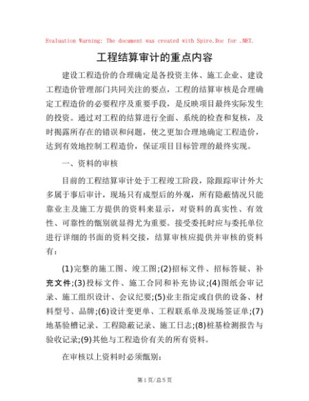 / 工程结算审计的重点内容