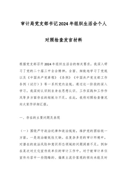 / 审计局党支部书记2024年组织生活会个人对照检查发言材料