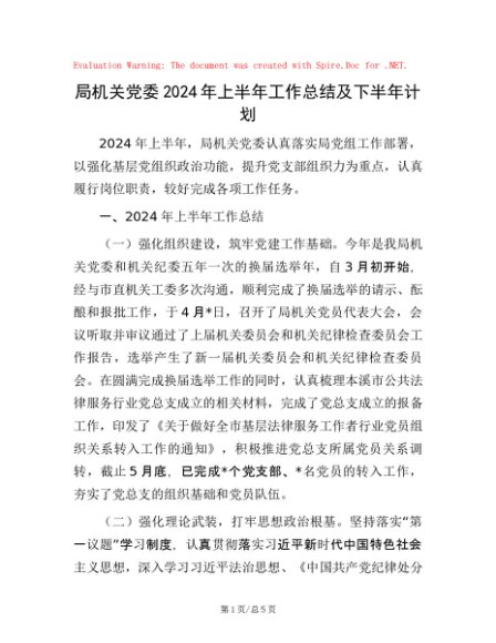 / 局机关党委2024年上半年工作总结及下半年计划