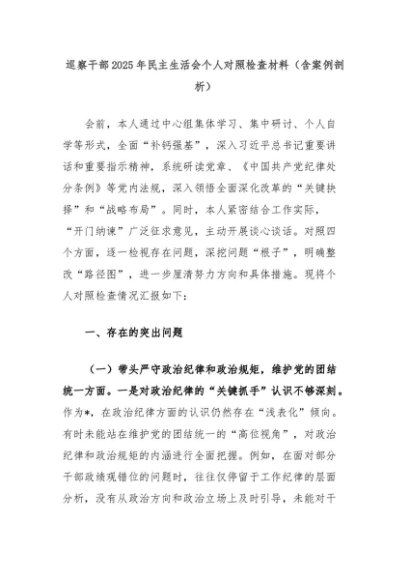 / 巡察干部2025年民主生活会个人对照检查材料(含案例剖析)