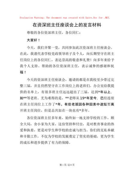 / 在资深班主任座谈会上的发言材料