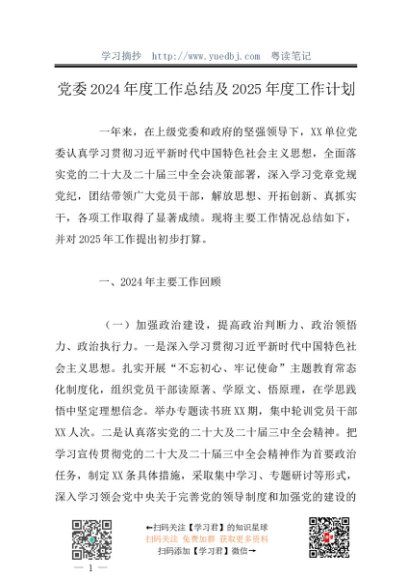 / 工作总结:20241127党委2024年度工作总结及2025年度工作计划