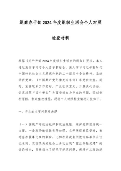 / 巡察办干部2024年度组织生活会个人对照检查材料
