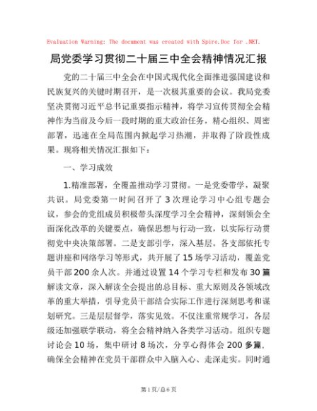 / 局党委学习贯彻二十届三中全会精神情况汇报