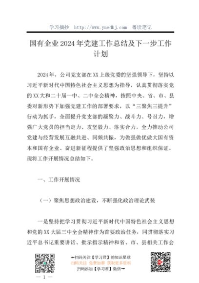 / 工作总结:20241127国有企业2024年党建工作总结及下一步工作计划