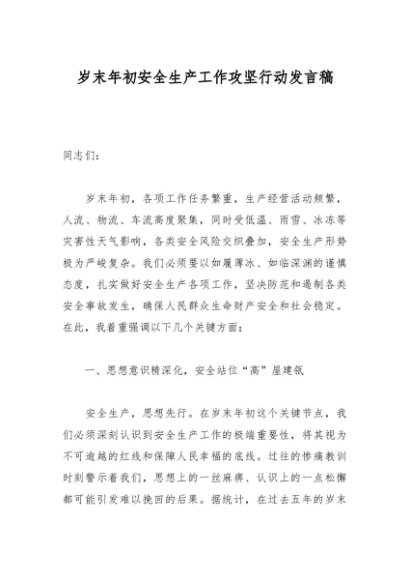 / 岁末年初安全生产工作攻坚行动发言稿 (1)