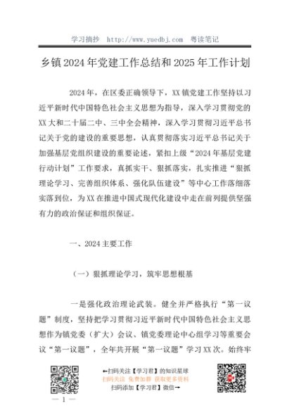 / 工作总结:20241127乡镇2024年党建工作总结和2025年工作计划