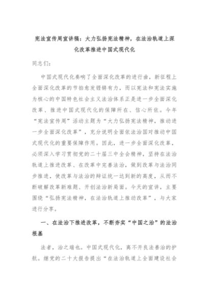 宪法宣传周宣讲稿:大力弘扬宪法精神,在法治轨道上深化改革推进中国式现代化