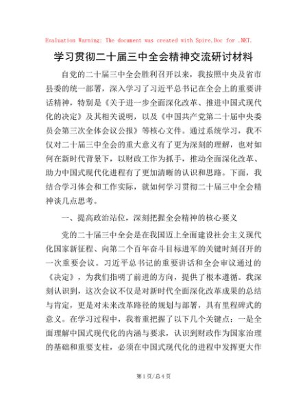 学习贯彻二十届三中全会精神交流研讨材料