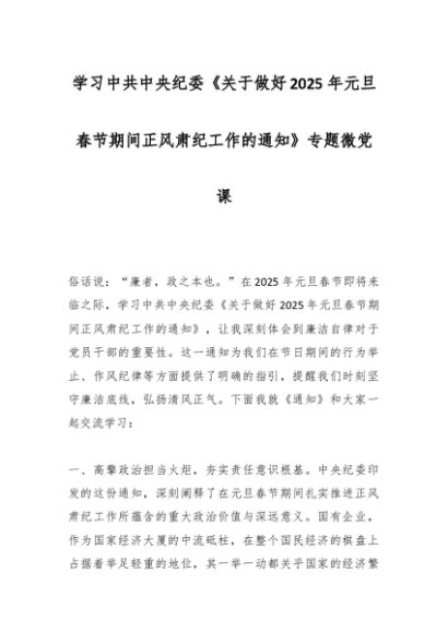 / 学习中共中央纪委《关于做好2025年元旦春节期间正风肃纪工作的通知》专题微党课