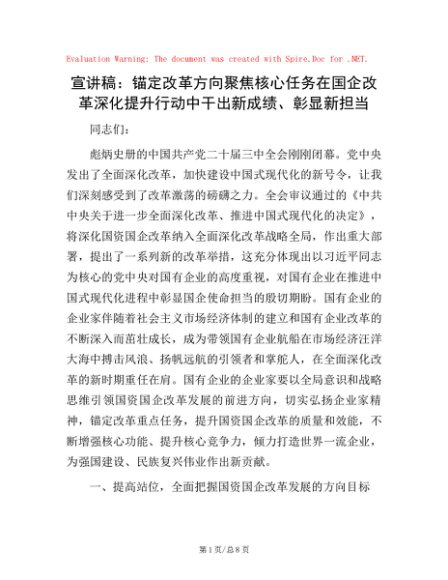 / 宣讲稿:锚定改革方向 聚焦核心任务 在国企改革深化提升行动中干出新成绩、彰显新担当