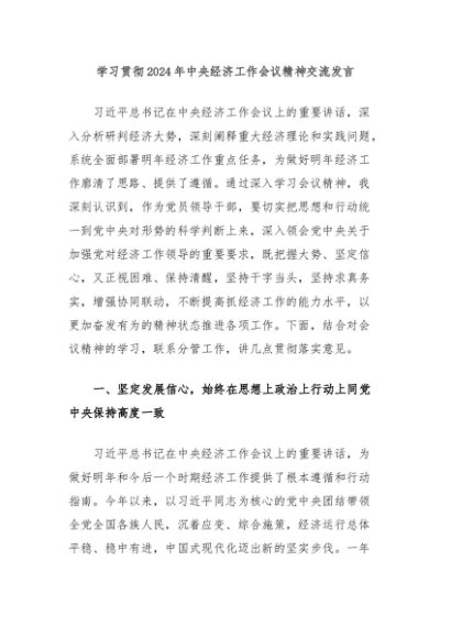 / 学习贯彻2024年中央经济工作会议精神交流发言