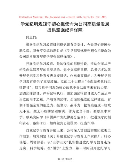 学党纪 明规矩 守初心 担使命 为公司高质量发展提供坚强纪律保障