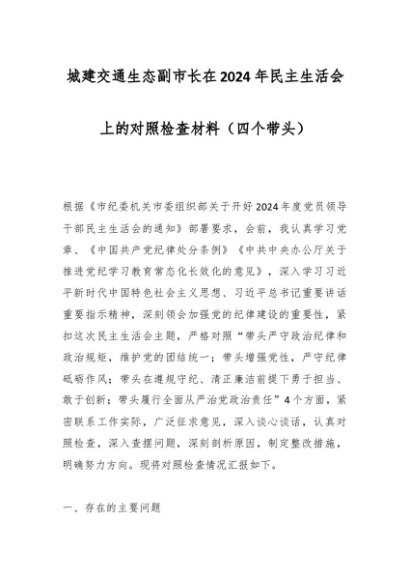 / 城建交通生态副市长在2024年民主生活会上的对照检查材料(四个带头)