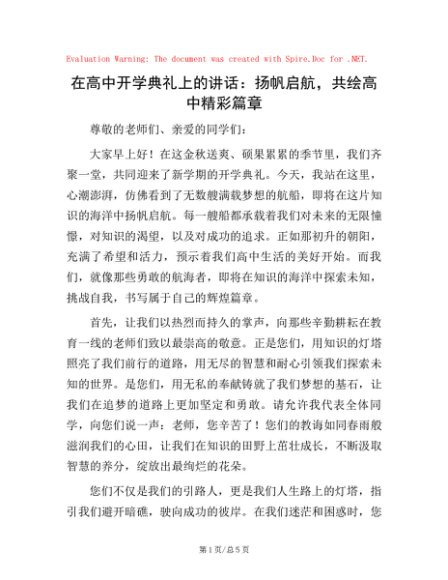 / 在高中开学典礼上的讲话:扬帆启航,共绘高中精彩篇章
