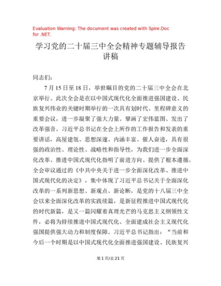 / 学习党的二十届三中全会精神专题辅导报告(讲稿)