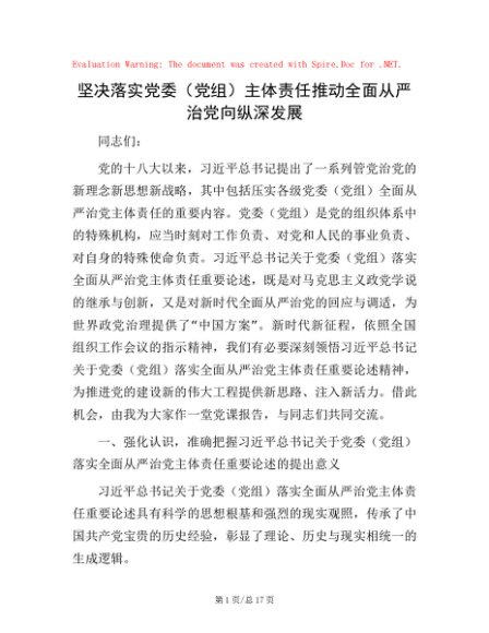 / 坚决落实党委(党组)主体责任 推动全面从严治党向纵深发展