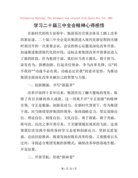 学习二十届三中全会精神心得感悟