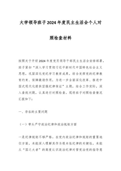 / 大学领导班子2024年度民主生活会个人对照检查材料