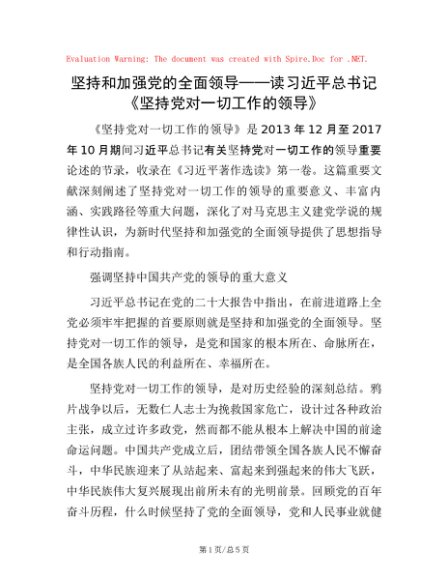 / 坚持和加强党的全面领导——读习近平总书记《坚持党对一切工作的领导》