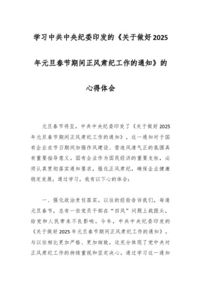 / 学习中共中央纪委印发的《关于做好2025年元旦春节期间正风肃纪工作的通知》的心得体会