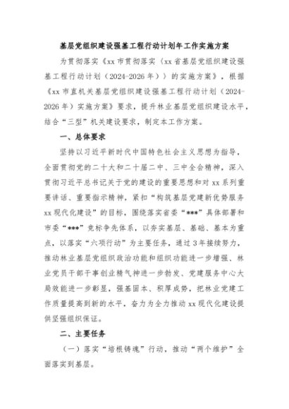 / 基层党组织建设强基工程行动计划年工作实施方案